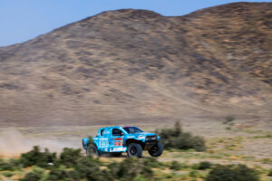 On this challenging stage to Al Salamiya, two surprising outsiders managed to invite themselves among the elite: Romain Dumas (5th) and Mathieu Serradori (7th). Eryk Goczał’s series of wins, taking in the prologue and first two stages, was halted in Al Salamiya by one of his many expected rivals, Mitch Guthrie, by a 1’09’’ margin. The young Polish driver reached the bivouac with the frustration of seeing his uncle Michał relegated to 1 hour 40 minutes from the lead, but still remains in control of the general rankings.