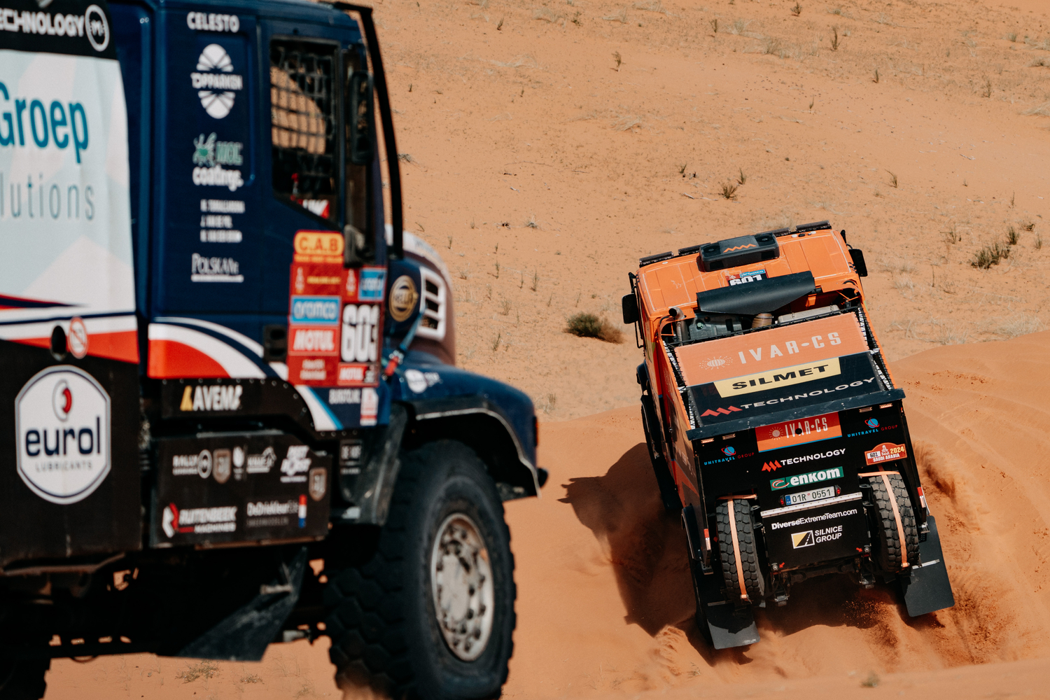 Calm most certainly reigns supreme in the cabin of Martin Macík’s truck. His nearest pursuer is none other than young Mitch van den Brink, who already won his first stage last year at the age of 20 years and has once again tasted victory the day after his 22nd birthday.