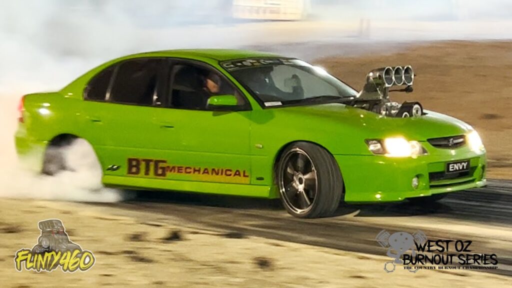 Share Facebook Twitter LinkedIn Pinterest Email Paul Phillips tearing it up at Katanning Burnouts in his Blown EFI Commodore “ENVY”.