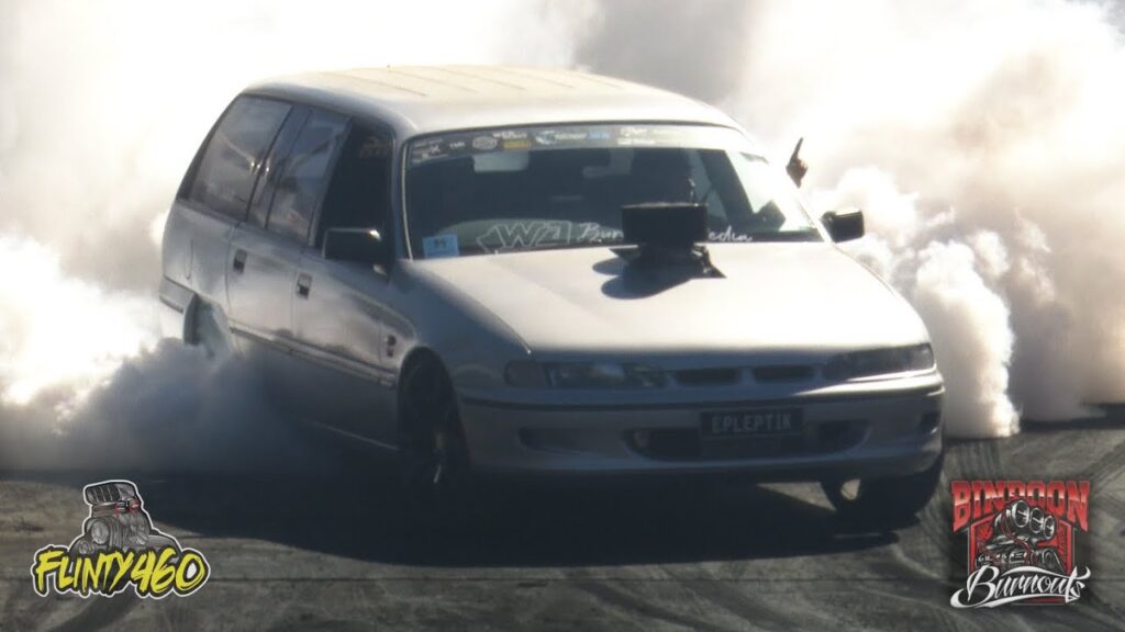 Share Facebook Twitter LinkedIn Pinterest Email Ryan Boyd punches a hole in the block of his 6 Litre VS Wagon “EPLEPTIK” at Bindoon Burnouts