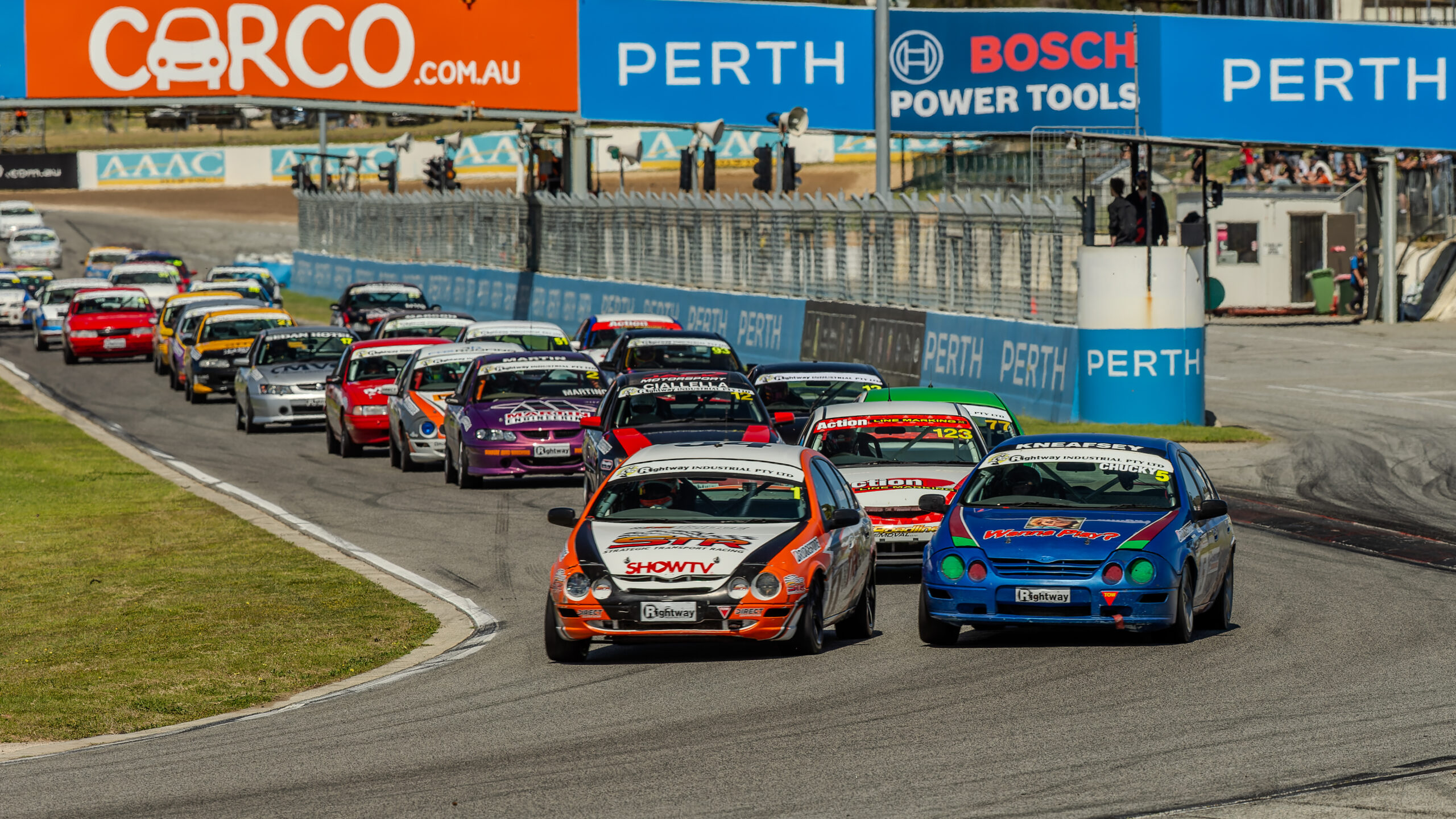 Featuring the Rightway Industrial Saloon Car Nationals and Formula Vee WA LiTech Systems National Challenge, the feature events were joined by 31 Historic Touring Cars including visitors from the east and Nicholas Swift from the UK, plus Free Formula, Formula Ford, FSR, Improved Production, Production Cars, Street Cars, Excel Cup, Sports Cars, Sports Sedans and WA Muscle Cars.