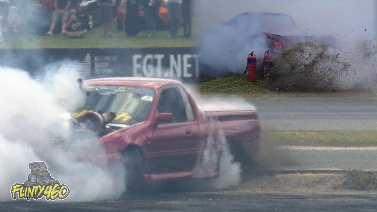 Share Facebook Twitter LinkedIn Pinterest Email Chad Douglas tries to make the Carco Raceway Burnout Pad slightly larger at the Festival of Speed with his Twin Turbo Ute “2MENTAL”.