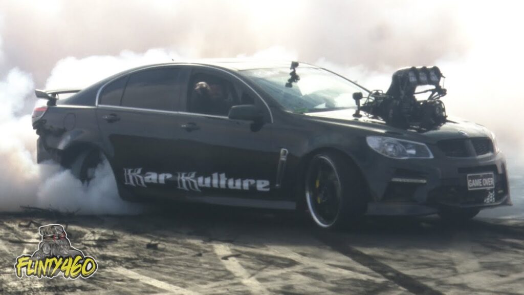 Share Facebook Twitter LinkedIn Pinterest Email Chris Orchard puts his awesome Blown Big Block Chev powered VF Commodore “GAMEOVER” on the Carco Raceway Pad for a Burnout Demonstration at The Festival of Speed.