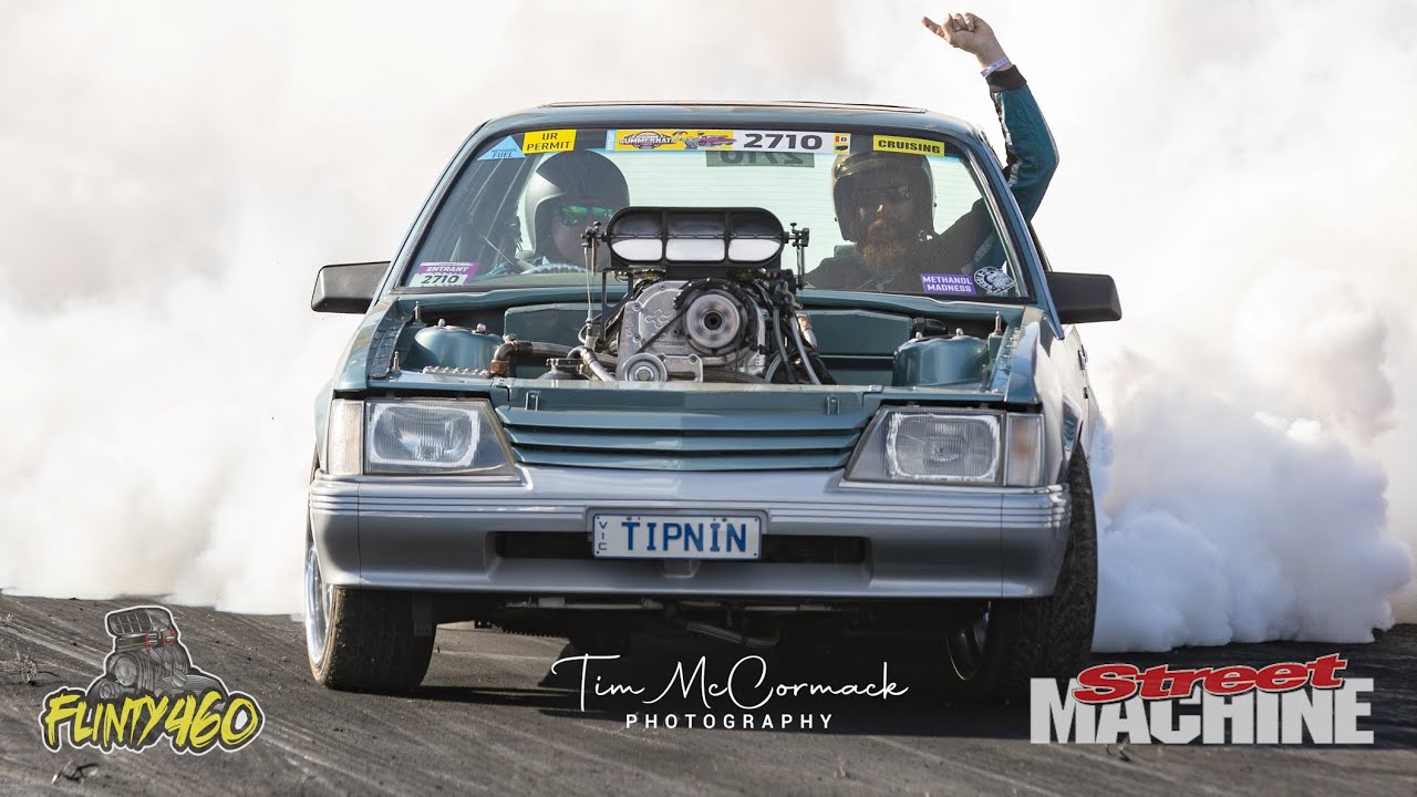 Bryan Smilie takes the Pro Burnout Series 3rd place position at Summernats 37 in his Blown Injected VK Commodore “TIPNIN”.