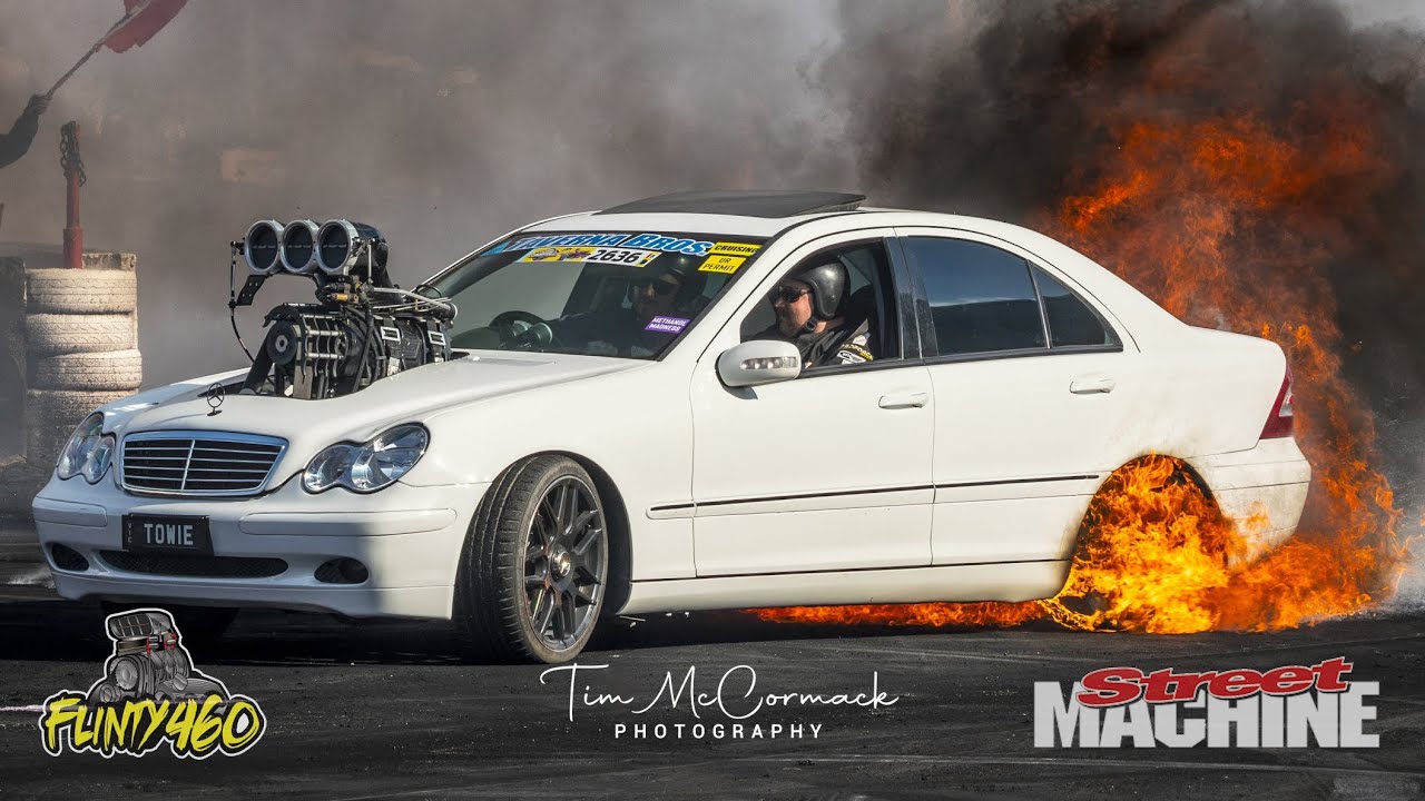 BLOWN INJECTED MERCEDES “TOWIE” LIGHTS UP THE SUMMERNATS 37 BURNOUT PAD