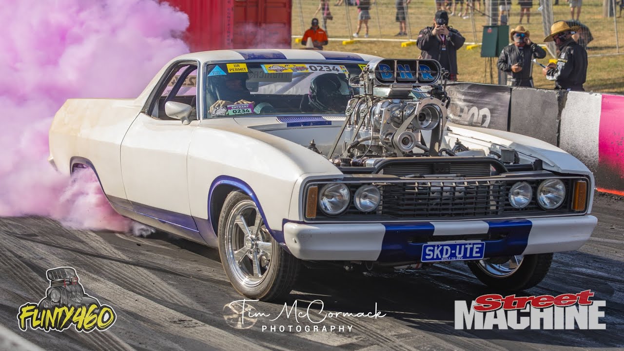 Steve Edsall gives his Blown Injected SBF XC Ute “SKDUTE” a solid thrashing during the Summernats 37 Pro Burnout Series Qualifying.