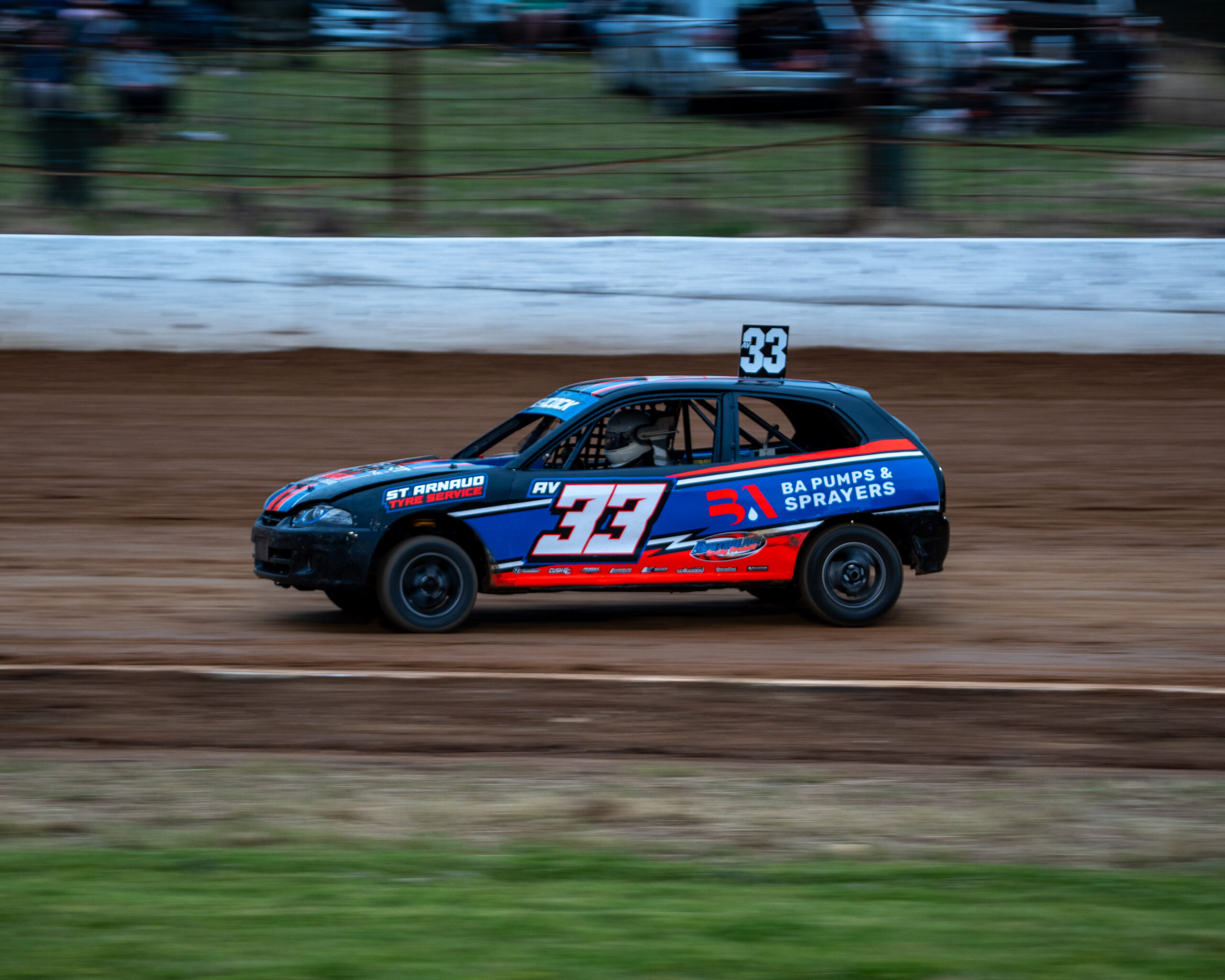 Street Stocks also held four heat races prior to the rain out and wins were split by four greater Ballarat drivers with Shaun Henry, Mick Clark, Josh Davey, and Jayden Blomeley taking wins along the way. Clark and Blomeley shared equal qualifying points at the conclusion of the heats and would have started the final from the front row. With a faster lap speed during the nights qualifying, Clark was awarded the win on points from Blomeley, Henry was third, Josh Davey, with Jamie Crutchley rounding out the top five.