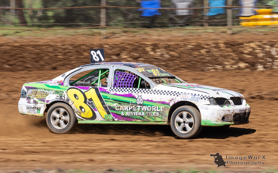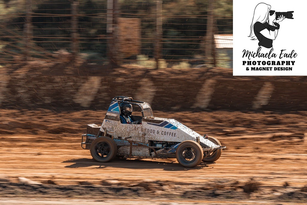 Leading at lap twenty-five Damien Miller led Brendan Miller, Nicolaisen, Warren and Bradin Claridge. Service and Cox with a broken rose joint and lower arm, were the next drivers to drop out of the race and with five laps left Damien Miler still led the race from Brendan Miller, Nicolaisen, Warren and Claridge.