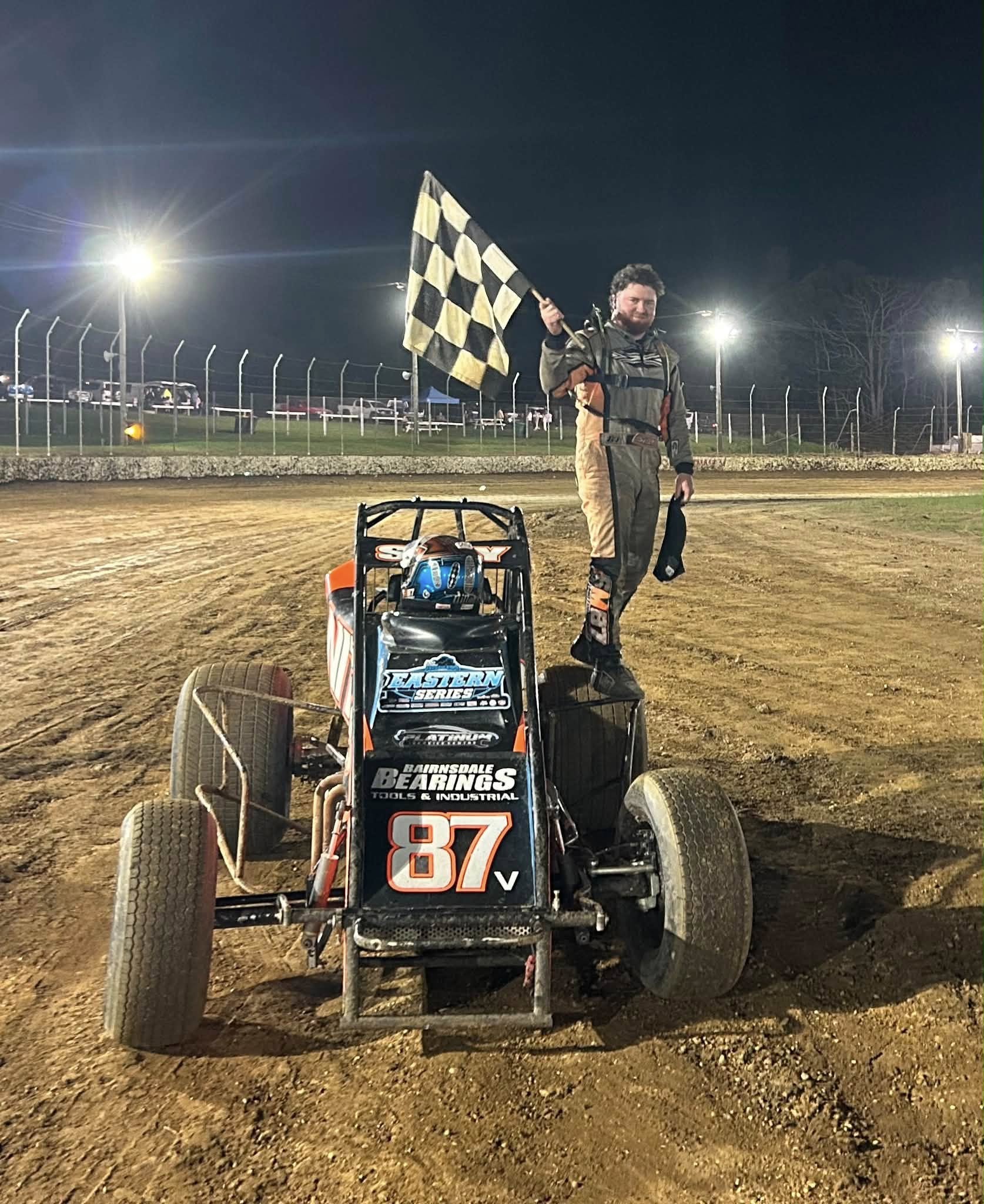 Siely initially led Regan and Irons before Fraser passed Irons around lap three. Regan connected with the concrete wall and suffered front end damage exiting the race around lap seven and at the halfway mark Siely led Fraser, Irons, Tyler O’Leary, and Mills. Nothing changed for the next five laps before O’Leary dropped out of the race and Siely maintained a buffer at the front of the field to beat Fraser, Irons, Mills and Cole.