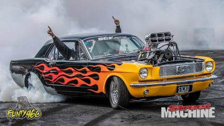 Jake Myers puts the iconic Myer’s Mustang “S1CKO” on the Summerrnats Burnout pad for the last time during the Burnout Masters qualifying session, and what a Burnout it was.