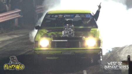 Wayne Daw smokes out Narrogin Revheads in his Blown Injected Big Block “SLYLUX”.