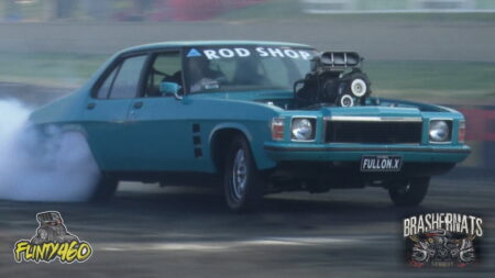 Blake Sheard debuted his Angry Blown Injected 540 cube VS Ute at last year’s Brashernats. He returned this year for an assault on the pad but was cut short with a HUGE Tyre Fire.