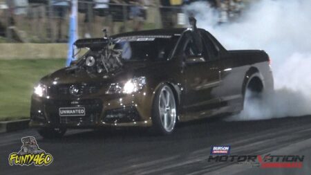 Anthony Page laid down a clinical Qualifying skid at Burnout King in his Blown SBC Holden Ute “PAGEY”, his passenger for the Burnout recently lost her daughter (Abbey) in a terrible accident.
