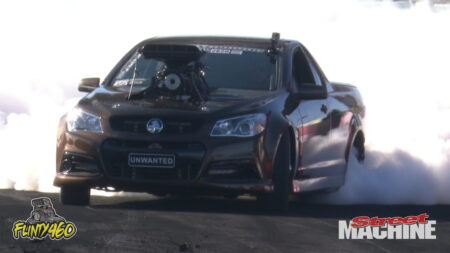 Matt James does not believe in Mechanical Sympathy, there’s no better demonstration of this when he’s behind the wheel of his Blown Big Block Chev powered VF Ute “UNWANTED’. At Summernats 35 during Burnout Masters Qualifying he was on a mission until an Electrical issue cut the Burnout short.