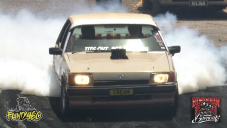 LS1 FALCON “CREAM” SUFFERS ENGINE DAMAGE AT BINDOON BURNOUTS